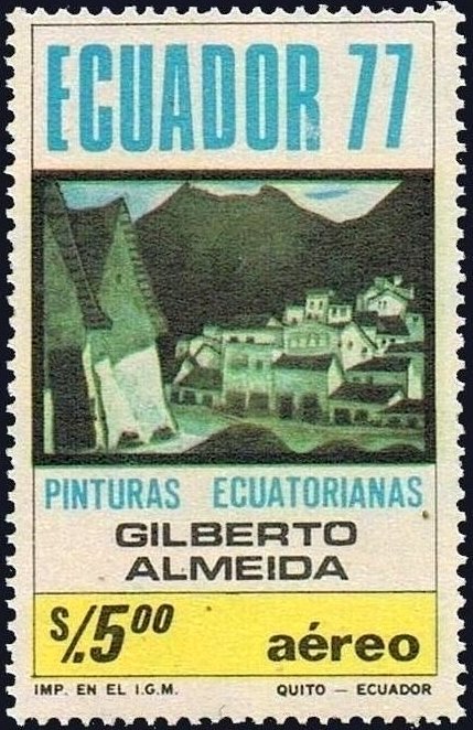 Visibility: public Image owner: none airmail 12/6/1978 5.00s multi issue=Ecuadorian Painters dt=Ecuadorian Paintings d="Mountain Village" - Gilberto Almeida unwmk Crops No visible images cropped from this one. Measurements Resolution is unknown. Source Source name: Colnect File URL: http://i.colnect.net/b/2914/896/Mountain-village--G-Almeida.jpg Uploaded June 5, 2016, 5:09 pm by Stan Shebs |
