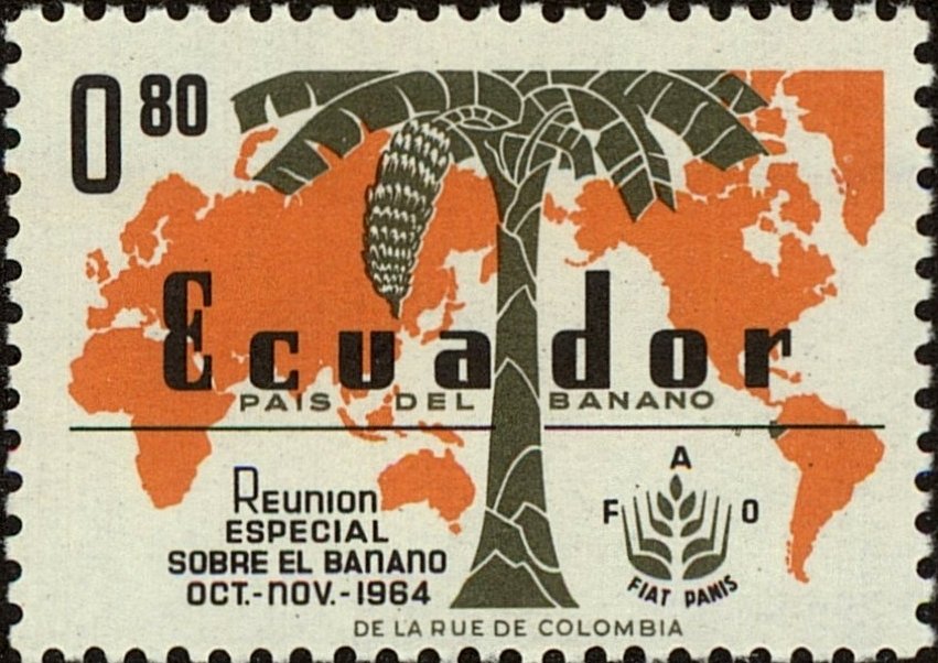 Visibility: public Image owner: none postage 10/26/1964 0.80s multi issue=Banana Conference unwmk Crops No visible images cropped from this one. Measurements Resolution is unknown. Source Source name: Colnect File URL: http://i.colnect.net/b/3215/107/Banana-tree-in-front-of-world-map--Identification-of-Ecuador.jpg Uploaded June 5, 2016, 11:10 pm by Stan Shebs |