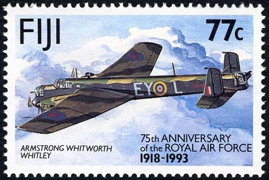 Visibility: public Image owner: none postage 4/1/1993 77c multi issue=RAF 75th d=Armstrong Whitworth Whitley wmk=mult crown & script CA perf=14 Crops No visible images cropped from this one. Measurements Resolution is unknown. Source Source name: Colnect File URL: http://i.colnect.net/images/b/2065/116/Armstrong-Whitley.jpg Uploaded June 7, 2016, 2:30 pm by Stan Shebs |