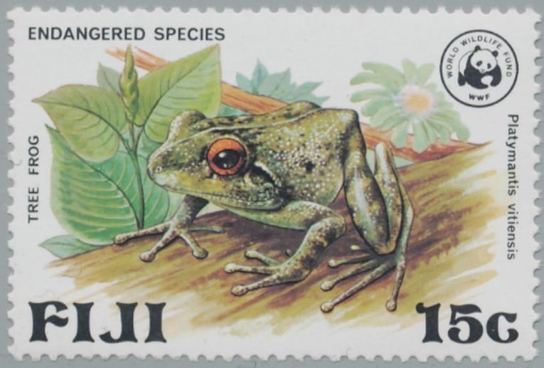 Visibility: public Image owner: none postage 3/19/1979 15c multi dt=endangered wildlife (1979) d=Platymantis vitiensis (1979) wmk=mult crown & script CA perf=14 Crops No visible images cropped from this one. Measurements Resolution is unknown. Source Source name: Colnect File URL: http://i.colnect.net/b/2650/406/Fiji-Tree-Frog-Platymantis-vitiensis.jpg Uploaded June 7, 2016, 2:31 pm by Stan Shebs |