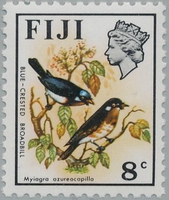 Visibility: public Image owner: none postage 8/6/1971 8c multi issue=1971 dt=birds & flowers (1971) d=Blue-crested broadbills wmk=mult crown & script CA perf=14 Crops No visible images cropped from this one. Measurements Resolution is unknown. Source Source name: Colnect File URL: http://i.colnect.net/images/b/2650/146/Blue-crested-Broadbill-Myiagra-azureocapilla.jpg Uploaded June 7, 2016, 2:38 pm by Stan Shebs |