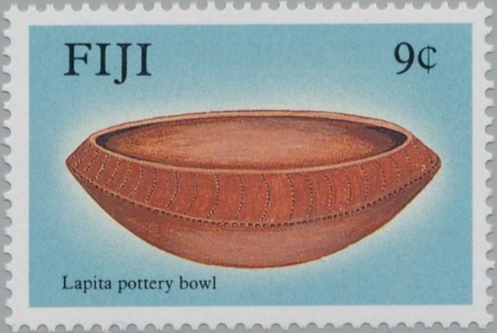 Visibility: public Image owner: none postage 8/29/1988 9c multi dt=ancient Fijian pottery d=Lapita pottery bowl wmk=crown & CA spiral Crops No visible images cropped from this one. Measurements Resolution is unknown. Source Source name: Colnect File URL: http://i.colnect.net/b/2651/479/Lapita.jpg Uploaded June 7, 2016, 2:53 pm by Stan Shebs |