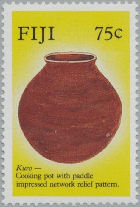 Visibility: public Image owner: none postage 8/29/1988 75c multi dt=ancient Fijian pottery d=Kuro wmk=crown & CA spiral Crops No visible images cropped from this one. Measurements Resolution is unknown. Source Source name: Colnect File URL: http://i.colnect.net/b/2651/484/Kuro.jpg Uploaded June 7, 2016, 2:53 pm by Stan Shebs |