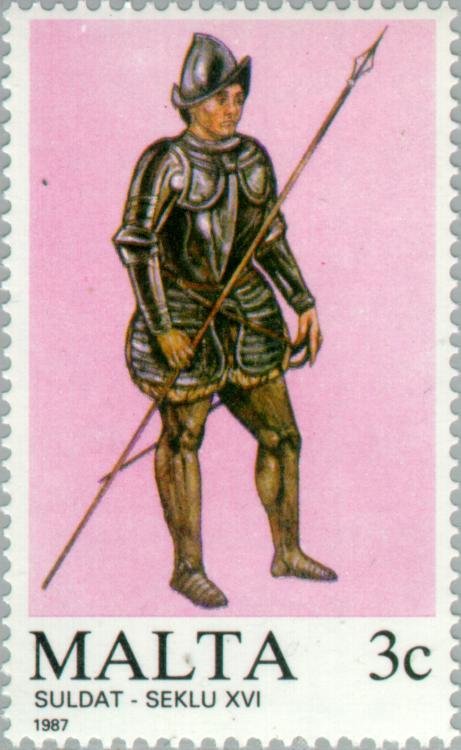 Visibility: public Image owner: none postage 6/10/1987 3c multi dt=uniforms of the Order of St John of Jerusalem d=soldier, 1500s unwmk perf=14 Crops No visible images cropped from this one. Measurements Resolution is unknown. Source Source name: Colnect File URL: http://i.colnect.net/images/b/130/937/16th-Century-Pikeman.jpg Uploaded August 24, 2014, 6:17 pm by Stan Shebs |