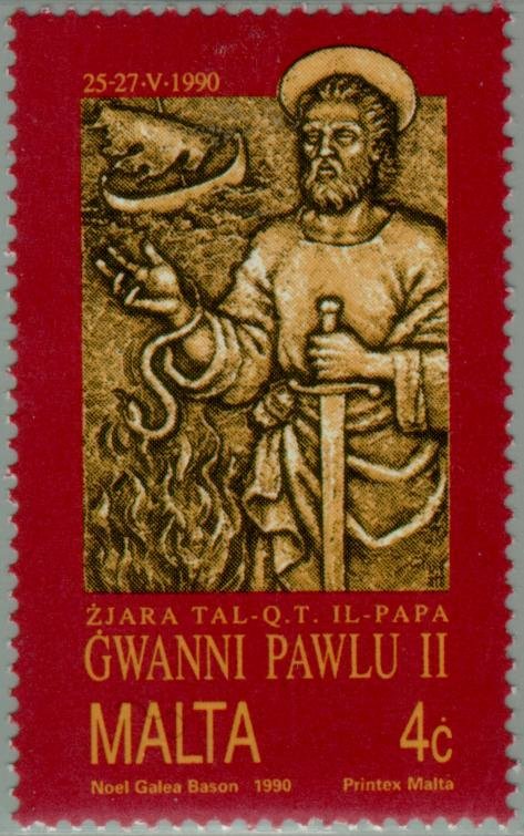 Visibility: public Image owner: none postage 5/25/1990 4c multi issue=Pope John Paul II visit to Malta d=St Paul wmk=Maltese cross mult Crops No visible images cropped from this one. Measurements Resolution is unknown. Source Source name: Colnect File URL: http://i.colnect.net/images/b/131/032/St-Paul.jpg Uploaded November 16, 2012, 4:54 am by Stan Shebs |