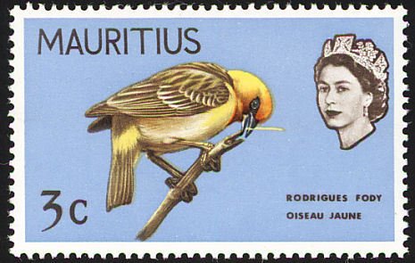 Visibility: public Image owner: none postage 7/12/1968 3c palebl&multi dt=birds (1965 Mauritius) d=Rodrigues fody (1965) wmk=mult crown & script CA perf=14 Crops No visible images cropped from this one. Measurements Resolution is unknown. Source Source name: Colnect File URL: http://i.colnect.net/b/734/511/Rodrigues-Fody-Foudia-flavicans.jpg Uploaded August 24, 2014, 6:18 pm by Stan Shebs |