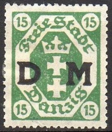 Visibility: public Image owner: none official 15pf grn issue=1921 official d=arms of Danzig (1921 a) ovpt=D M oc=blk on=15pf-arms 1921 wmk=honeycomb (Danzig) perf=serrate roul 13.5 Crops No visible images cropped from this one. Measurements Resolution is unknown. Source Source name: Colnect File URL: http://i.colnect.net/b/2597/400/The-coat-of-arms-of-Danzig-in-an-octagonal-frame.jpg Uploaded June 9, 2016, 4:51 pm by Stan Shebs |