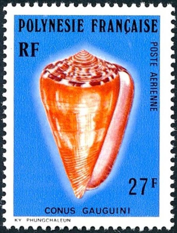 Visibility: public Image owner: none airmail 3/14/1977 27fr multi issue=Sea Shells 1977 dt=seashells (1977 French Polynesia) d=Conus Gauguini unwmk Crops No visible images cropped from this one. Measurements Resolution is unknown. Source Source name: Colnect File URL: http://i.colnect.net/b/3221/349/Gauguin-s-Cone-Conus-gauguini.jpg Uploaded June 9, 2016, 7:27 pm by Stan Shebs |