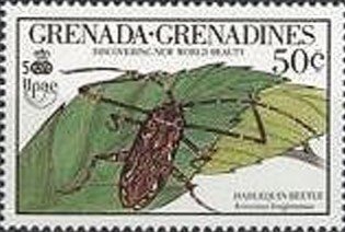 Visibility: public Image owner: none postage 3/16/1990 50c multi issue=500th Anniversary of Discovery of America by Columbus - New World Natural History - Insects dt=insects (1990 Grenada Grenadines) d=harlequin beetle Acrocinus longimanus (1990) unwmk perf=14 Crops No visible images cropped from this one. Measurements Resolution is unknown. Source Source name: Colnect File URL: http://i.colnect.net/b/2420/090/Harlequin-Beetle-Acrocinus-longimanus.jpg Uploaded June 15, 2016, 8:10 pm by Stan Shebs |
