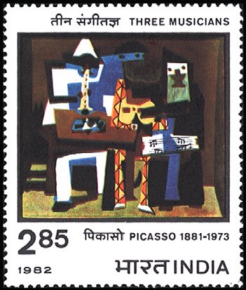 Visibility: public Image owner: none postage 3/15/1982 2.85r multi issue=100th Anniversary of the Birth of Picasso wmk=Asokan capital Crops No visible images cropped from this one. Measurements Resolution is unknown. Source Source name: Colnect File URL: http://i.colnect.net/b/2523/564/Picasso--Three-Musicians.jpg Uploaded June 19, 2016, 2:25 pm by Stan Shebs |