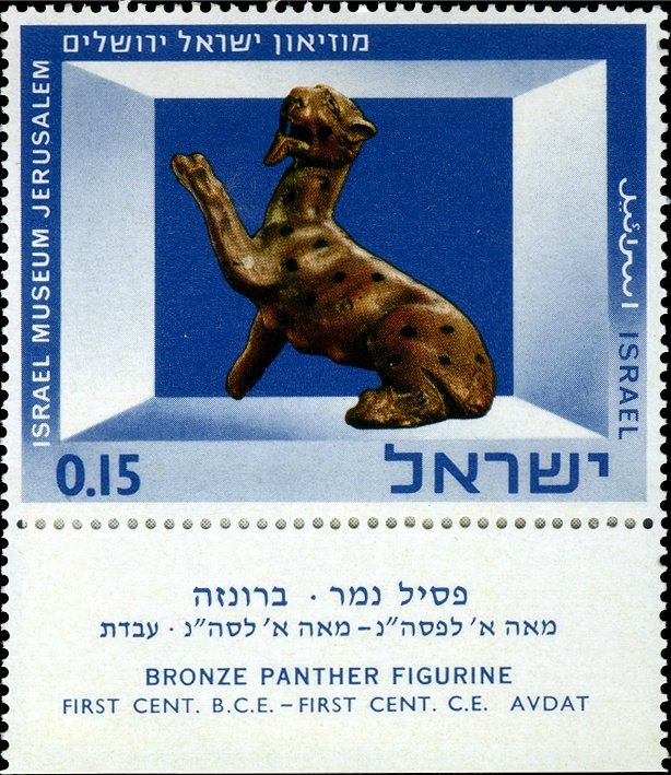 Visibility: public Image owner: none postage 10/26/1966 0.15(lb) multi issue=Israel Museum Exhibits d=+ tab unwmk Crops No visible images cropped from this one. Measurements Resolution is unknown. Source Source name: Colnect File URL: http://i.colnect.net/b/2593/687/Bronze-Panther-Avdat-1st-Cent-BC.jpg Uploaded June 20, 2016, 6:31 pm by Stan Shebs |