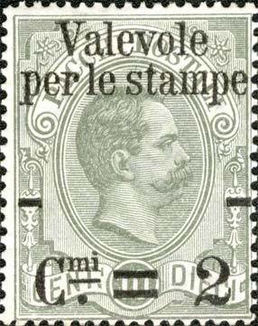 Visibility: public Image owner: none postage 12/1/1890 2c olgray d=Umberto I ovpt=Valevole/perle stampe oc=blk on=type=parcel post-10c-olgray wmk=crown (Italy) perf=14 Crops No visible images cropped from this one. Measurements Resolution is unknown. Source Source name: Colnect File URL: http://i.colnect.net/images/b/2763/813/Effigy-of-Umberto-I-within-an-oval.jpg Uploaded June 21, 2016, 4:20 pm by Stan Shebs |