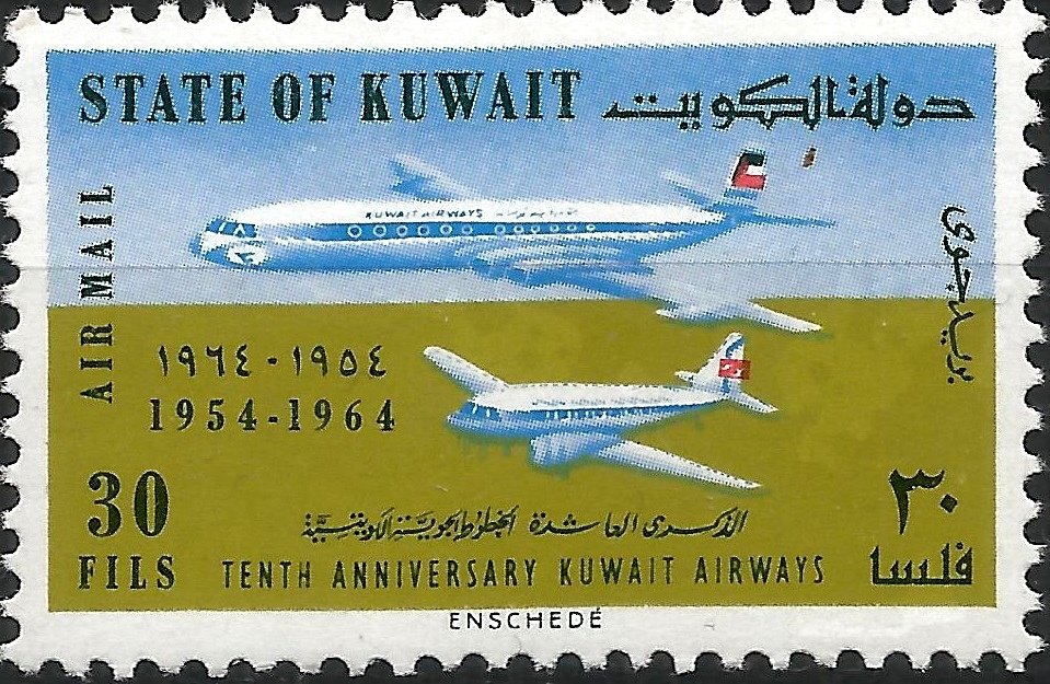 Visibility: public Image owner: none airmail 11/29/1964 30f multi issue=10th anniversary Kuwait Airways d=comet & DC-3 Crops No visible images cropped from this one. Measurements Resolution is unknown. Source Source name: Colnect File URL: http://i.colnect.net/images/b/3132/246/Kuwait-Airways-10th-anniversary.jpg Uploaded June 22, 2016, 9:22 pm by Stan Shebs |