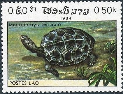 Visibility: public Image owner: none postage 8/20/1984 0.50k multi dt=reptiles (1984 Laos) d=Malaclemys terrapin unwmk Crops No visible images cropped from this one. Measurements Resolution is unknown. Source Source name: Colnect File URL: http://i.colnect.net/b/3022/900/Diamondback-Terrapin-Malaclemys-terrapin.jpg Uploaded June 23, 2016, 6:23 pm by Stan Shebs |