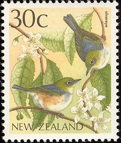 Visibility: public Image owner: none postage 11/2/1988 30c multi issue=1988 dt=birds (1988 New Zealand) d=Zosterops lateralis wmk=multiple NZ & star perf=14.25x14 Crops No visible images cropped from this one. Measurements Resolution is unknown. Source Source name: Colnect File URL: http://i.colnect.net/b/735/527/Silvereye---Wax-eye-Zosterops-lateralis.jpg Uploaded November 19, 2012, 2:34 am by Stan Shebs |