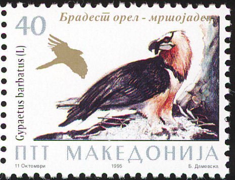 Visibility: public Image owner: none postage 12/14/1995 40d multi issue=Nature Preservation 1995 d=Gypaetus barbatus (1995) unwmk perf=10 Crops No visible images cropped from this one. Measurements Resolution is unknown. Source Source name: Colnect File URL: http://i.colnect.net/b/2815/528/Bearded-Vulture-Gypaetus-barbatus.jpg Uploaded June 27, 2016, 9:22 pm by Stan Shebs |