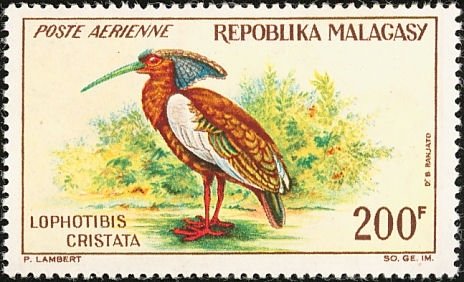 Visibility: public Image owner: none airmail 8/12/1963 200fr multi issue=Birds 1963 dt=birds (1963) d=Lophobitis cristata unwmk Crops No visible images cropped from this one. Measurements Resolution is unknown. Source Source name: Colnect File URL: http://i.colnect.net/images/b/2580/966/Madagascar-Crested-Ibis-Lophotibis-cristata.jpg Uploaded June 28, 2016, 3:38 pm by Stan Shebs |