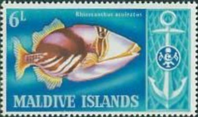 Visibility: public Image owner: none postage 5/1/1967 6L multi dt=tropical fishes (1967 Maldive Islands) d=Striped triggerfish (1967 Maldive Islands) unwmk perf=14 Crops No visible images cropped from this one. Measurements Resolution is unknown. Source Source name: Colnect File URL: http://i.colnect.net/images/b/2673/917/White-banded-Triggerfish-Rhinecanthus-aculeatus.jpg Uploaded June 29, 2016, 5:57 pm by Stan Shebs |