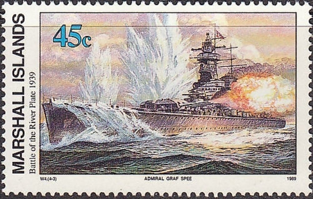 Visibility: public Image owner: none postage 12/15/1989 45c multi issue=History of the Second World War - Battle of the River Plate, 1939 d=Admiral Graf Spee unwmk perf=13.5 Crops No visible images cropped from this one. Measurements Resolution is unknown. Source Source name: Colnect File URL: http://i.colnect.net/b/3101/113/Admiral-Graf-Spee.jpg Uploaded June 30, 2016, 3:45 pm by Stan Shebs |