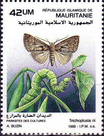 Visibility: public Image owner: none postage 12/29/1988 42um multi dt=Plant Pests d=Trichoplusia ni (1988) unwmk Crops No visible images cropped from this one. Measurements Resolution is unknown. Source Source name: Colnect File URL: http://i.colnect.net/b/3075/194/Cabbage-Looper-Trichoplusia-ni.jpg Uploaded June 30, 2016, 5:04 pm by Stan Shebs |