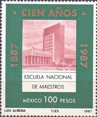 Visibility: public Image owner: none postage 2/24/1987 100p multi issue=100th Anniversary of Higher Education wmk=MEX & eagle Crops No visible images cropped from this one. Measurements Resolution is unknown. Source Source name: Colnect File URL: http://i.colnect.net/b/2928/570/Centenary-of-the-National-School-Teachers.jpg Uploaded July 1, 2016, 9:13 pm by Stan Shebs |