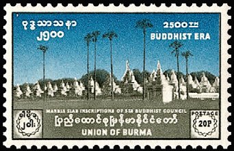 Visibility: public Image owner: none postage 5/24/1956 20p issue=Buddhist Era 2500th d=marble markers wmk=elephant heads Crops No visible images cropped from this one. Measurements Resolution is unknown. Source Source name: Colnect File URL: http://i.colnect.net/b/2510/631/Marble-Markers-of-5th-Buddhist-Council.jpg Uploaded July 6, 2016, 6:40 pm by Stan Shebs |