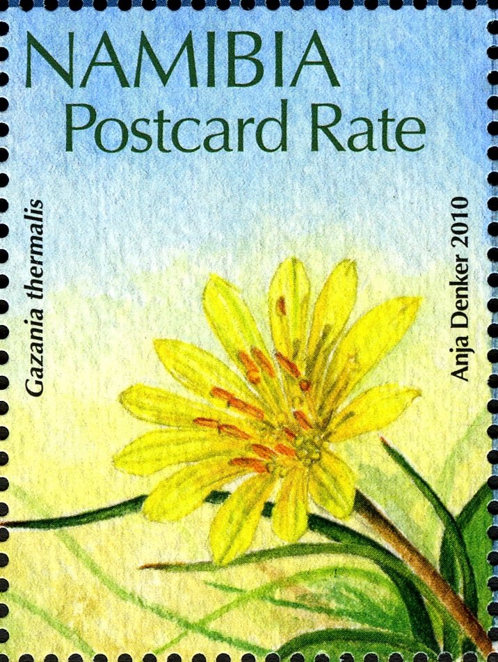 Visibility: public Image owner: none postage 2/8/2010 Postcard Rate dt=endangered species of Namibia d=Gazania thermalis unwmk Crops No visible images cropped from this one. Measurements Resolution is unknown. Source Source name: Colnect File URL: http://i.colnect.net/b/3063/972/Gazania-thermalis.jpg Uploaded July 6, 2016, 7:32 pm by Stan Shebs |