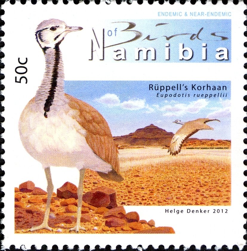 Visibility: public Image owner: none postage 2/13/2012 $0.50 multi issue=2012 dt=Endemic and Near-Endemic birds of Namibia d=Ruppell's Korhaan unwmk Crops No visible images cropped from this one. Measurements Resolution is unknown. Source Source name: Colnect File URL: http://i.colnect.net/b/3063/310/Rüppell-s-Korhaan-Eupodotis-rueppellii.jpg Uploaded July 6, 2016, 7:35 pm by Stan Shebs |