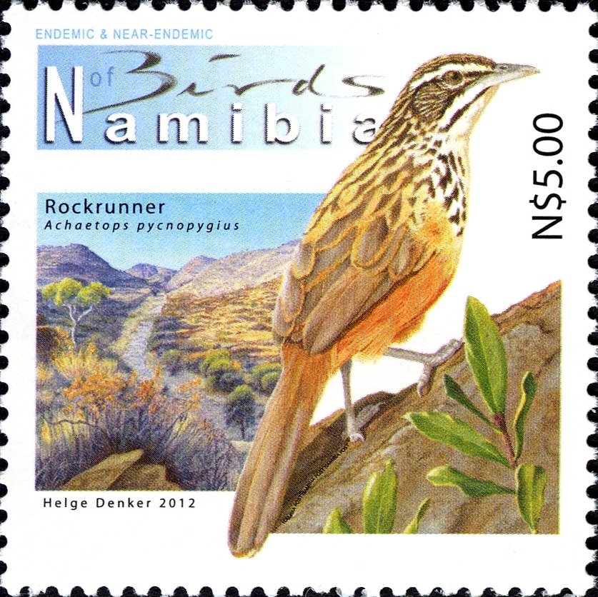 Visibility: public Image owner: none postage 2/13/2012 $5.00 multi issue=2012 dt=Endemic and Near-Endemic birds of Namibia d=rockrunner Achaetops pycnopygius unwmk Crops No visible images cropped from this one. Measurements Resolution is unknown. Source Source name: Colnect File URL: http://i.colnect.net/b/3063/311/Rockrunner-Achaetops-pycnopygius.jpg Uploaded July 6, 2016, 7:35 pm by Stan Shebs |