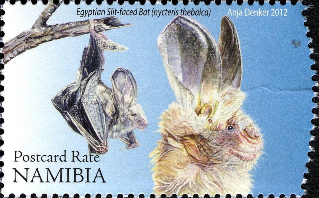 Visibility: public Image owner: none postage 4/16/2012 Postcard Rate multi dt=bats of Namibia d=Egyptian Slit-faced Bat unwmk Crops No visible images cropped from this one. Measurements Resolution is unknown. Source Source name: Colnect File URL: http://i.colnect.net/b/3063/940/Egyptian-Slit-faced-Bat-Nycteris-thebaica.jpg Uploaded July 6, 2016, 7:35 pm by Stan Shebs |