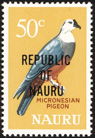 Visibility: public Image owner: none postage 50c multi issue=1968 d=Ducula oceanica ovpt=REPUBLIC//OF//NAURU oc=blk on=1966-50c unwmk perf=Different Crops No visible images cropped from this one. Measurements Resolution is unknown. Source Source name: Colnect File URL: http://i.colnect.net/b/2816/361/Micronesian-Imperial-pigeon-Ducula-oceanica.jpg Uploaded July 6, 2016, 8:49 pm by Stan Shebs |