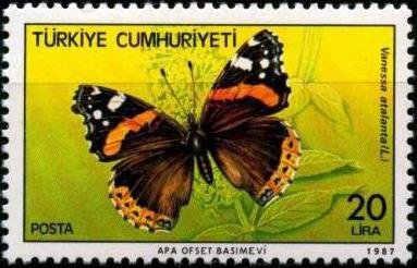Visibility: public Image owner: none postage 2/25/1987 20l multi dt=butterflies (1987 Turkey) d=Vanessa atalanta (1987) unwmk Crops No visible images cropped from this one. Measurements Resolution is unknown. Source Source name: Colnect File URL: http://i.colnect.net/b/748/249/Red-Admiral-Vanessa-atalanta.jpg Uploaded August 24, 2014, 8:20 pm by Stan Shebs |