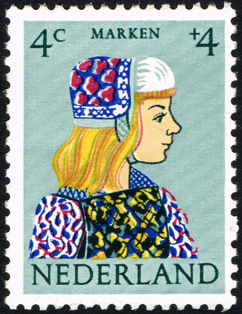 Visibility: public Image owner: none semipostal 11/14/1960 4+4c multi issue=child welfare 1960 b dt=regional costumes (1960 Netherlands) d=Marken costume unwmk perf=12.5x12 Crops No visible images cropped from this one. Measurements Resolution is unknown. Source Source name: Colnect File URL: http://i.colnect.net/b/2192/810/Marken-costume.jpg Uploaded July 7, 2016, 2:04 pm by Stan Shebs |