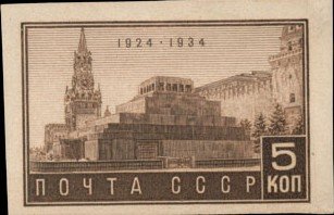 Visibility: public Image owner: none postage 2/7/1934 5k brn issue=Lenin death 10th d=Lenin Mausoleum (1934) unwmk Crops No visible images cropped from this one. Measurements Resolution is unknown. Source Source name: Colnect File URL: http://i.colnect.net/b/456/872/Vladimir-Lenin-s-Mausoleum.jpg Uploaded August 24, 2014, 8:30 pm by Stan Shebs |