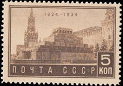 Visibility: public Image owner: none postage 2/7/1934 5k brn issue=Lenin death 10th d=Lenin Mausoleum (1934) unwmk Crops No visible images cropped from this one. Measurements Resolution is unknown. Source Source name: Colnect File URL: http://i.colnect.net/b/456/871/Vladimir-Lenin-s-Mausoleum.jpg Uploaded August 24, 2014, 8:30 pm by Stan Shebs |