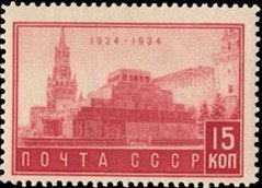 Visibility: public Image owner: none postage 2/7/1934 15k dkcar issue=Lenin death 10th d=Lenin Mausoleum (1934) unwmk perf=13.75 Crops No visible images cropped from this one. Measurements Resolution is unknown. Source Source name: Colnect File URL: http://i.colnect.net/b/456/875/Vladimir-Lenin-s-Mausoleum.jpg Uploaded August 24, 2014, 8:30 pm by Stan Shebs |