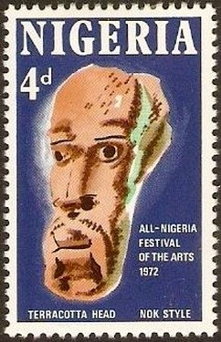 Visibility: public Image owner: none postage 9/1/1972 4p multi issue=All-Nigeria Festival of the Arts wmk=mult crown & script CA Crops No visible images cropped from this one. Measurements Resolution is unknown. Source Source name: Colnect File URL: http://i.colnect.net/b/2833/032/Nok-Style-Terra-cotta-Head-Katsina-Ala.jpg Uploaded July 11, 2016, 1:51 pm by Stan Shebs |