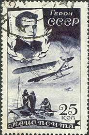 Visibility: public Image owner: none airmail 1/25/1935 25k ind issue=Rescue of Chelyuskin Expedition unwmk perf=13.75 Crops No visible images cropped from this one. Measurements Resolution is unknown. Source Source name: Colnect File URL: http://i.colnect.net/b/549/015/Heroic-pilot-Mikhail-Vodopyanov-and-aircraft-Polikarpov-R-5.jpg Uploaded August 24, 2014, 8:35 pm by Stan Shebs |