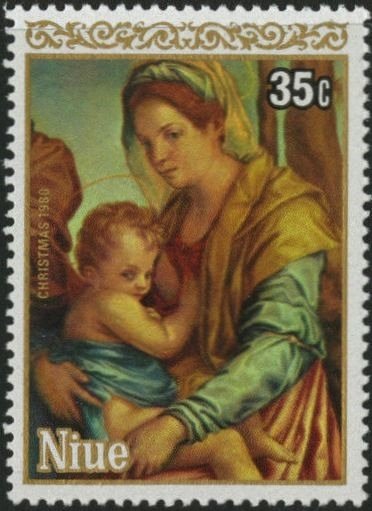 Visibility: public Image owner: none postage 11/28/1980 35c multi issue=Christmas 1980 dt=del Sarto paintings d=Virgin Child by Andrea del Sarto unwmk Crops No visible images cropped from this one. Measurements Resolution is unknown. Source Source name: Colnect File URL: http://i.colnect.net/b/3229/019/Virgin---Child-by-Andrea-del-Sarto.jpg Uploaded July 11, 2016, 3:23 pm by Stan Shebs |