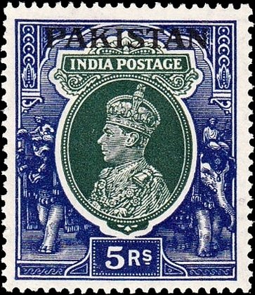 Visibility: public Image owner: none postage 5r ultra&dkgrn issue=1947 d=King George VI & elephants ovpt=PAKISTAN oc=blk on=issuer=India-1937-5r wmk=mult stars Crops No visible images cropped from this one. Measurements Resolution is unknown. Source Source name: Colnect File URL: http://i.colnect.net/b/2735/105/King-Georg-Vi-India-Overprint-Pakistan.jpg Uploaded July 12, 2016, 12:18 pm by Stan Shebs |