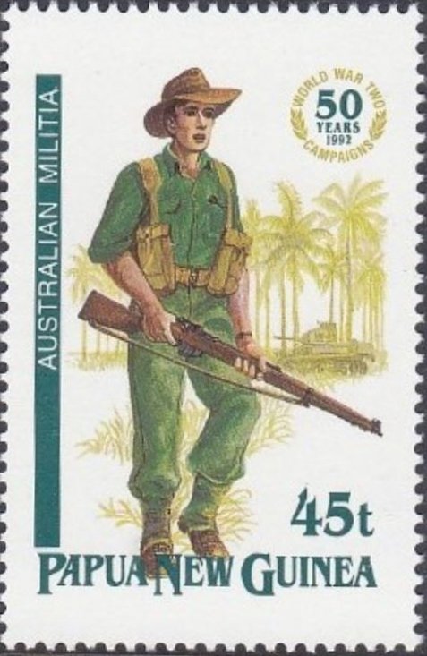 Visibility: public Image owner: none postage 7/22/1992 45t multi issue=50th Anniversary of the Second World War Campaigns in Papua New Guinea d=Australian Militia unwmk Crops No visible images cropped from this one. Measurements Resolution is unknown. Source Source name: Colnect File URL: http://i.colnect.net/b/3126/086/Australian-Militia.jpg Uploaded July 12, 2016, 3:40 pm by Stan Shebs |