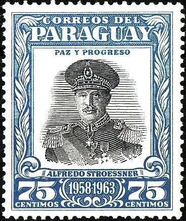 Visibility: public Image owner: none postage 8/15/1958 75c bl&blk issue=Stroessner reelection d=Alfredo Stroessner wmk=interlacing lines perf=13.5 Crops No visible images cropped from this one. Measurements Resolution is unknown. Source Source name: Colnect File URL: http://i.colnect.net/images/b/3268/442/Pres-Alfredo-Stroessner.jpg Uploaded July 12, 2016, 4:38 pm by Stan Shebs |