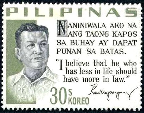 Visibility: public Image owner: none Crops No visible images cropped from this one. Measurements Resolution is unknown. Source Source name: Colnect File URL: http://i.colnect.net/b/2892/854/Presidential-Credo---Ramon-Magsaysay-1907-1957.jpg Uploaded July 13, 2016, 5:02 pm by Stan Shebs |