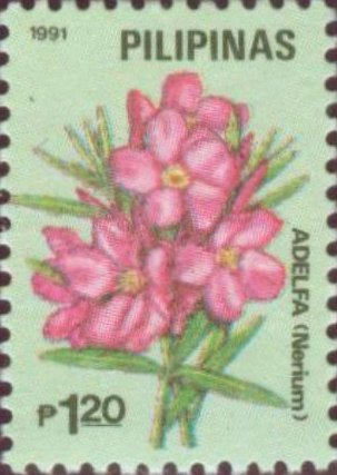 Visibility: public Image owner: none postage 6/7/1991 1.20p multi issue=1991 dt=flowers (1991 Philippines) d=Nerium oleander (1991) unwmk perf=13.75 Crops No visible images cropped from this one. Measurements Resolution is unknown. Source Source name: Colnect File URL: http://i.colnect.net/b/2957/282/Oleander-Nerium.jpg Uploaded July 13, 2016, 8:12 pm by Stan Shebs |