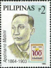 Visibility: public Image owner: none postage 12/26/1995 2p multi issue=100th Anniversary of Declaration of Philippine Independence Revolutionaries d=Andres Bonifacio (1995) unwmk perf=14 Crops No visible images cropped from this one. Measurements Resolution is unknown. Source Source name: Colnect File URL: http://i.colnect.net/b/2989/764/Apolinario-Mabini.jpg Uploaded July 13, 2016, 9:13 pm by Stan Shebs |