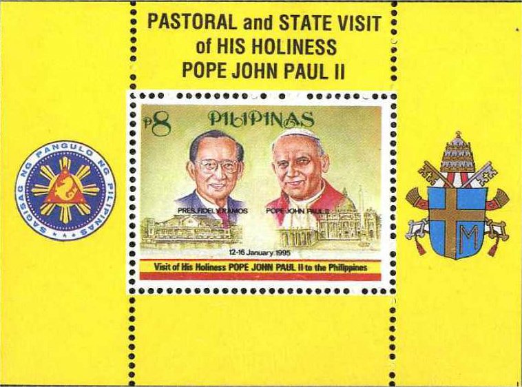 Visibility: public Image owner: none Crops No visible images cropped from this one. Measurements Resolution is unknown. Source Source name: Colnect File URL: http://i.colnect.net/b/2989/330/Pope-John-Paul-II-and-President-Fidel-V-Ramos.jpg Uploaded July 13, 2016, 9:13 pm by Stan Shebs |