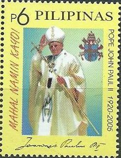 Visibility: public Image owner: none postage 6/28/2005 6p multi issue=Pope John Paul II memorial unwmk perf=14.25 Crops No visible images cropped from this one. Measurements Resolution is unknown. Source Source name: Colnect File URL: http://i.colnect.net/b/2889/219/Tribute-to-His-Holiness-Pope-John-Paul-II.jpg Uploaded July 14, 2016, 4:16 pm by Stan Shebs |