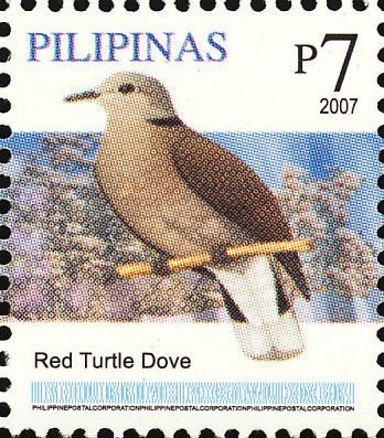 Visibility: public Image owner: none postage 12/10/2007 7p multi issue=birds 2007 d=Streptopelia tranquebarica unwmk Crops No visible images cropped from this one. Measurements Resolution is unknown. Source Source name: Colnect File URL: http://i.colnect.net/images/b/2876/078/Red-Turtle-Dove-nbsp-Streptopelia-tranquebarica.jpg Uploaded July 14, 2016, 6:31 pm by Stan Shebs |