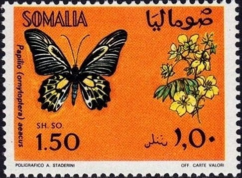 Visibility: public Image owner: none postage 3/25/1970 1,50sh dt=butterflies (1970 Somalia) d=Troides aeacus (1970) unwmk perf=12.75x13 Crops No visible images cropped from this one. Measurements Resolution is unknown. Source Source name: Colnect File URL: http://i.colnect.net/b/2313/844/Golden-Birdwing-Papilio-aeacus.jpg Uploaded July 15, 2016, 4:51 am by Stan Shebs |