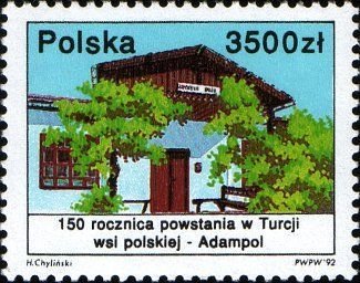 Visibility: public Image owner: none postage 9/15/1992 3500z multi issue=Adampol 150th unwmk perf=11x11.75 Crops No visible images cropped from this one. Measurements Resolution is unknown. Source Source name: Colnect File URL: http://i.colnect.net/images/b/3063/430/AdampolPolish-Village-in-Turkey-150th-Anniv.jpg Uploaded July 15, 2016, 5:06 pm by Stan Shebs |